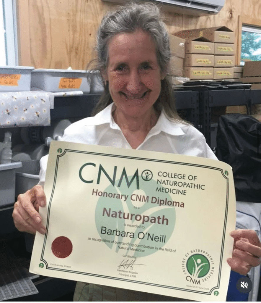 Barbara O’Neill na apresentação do tratamento